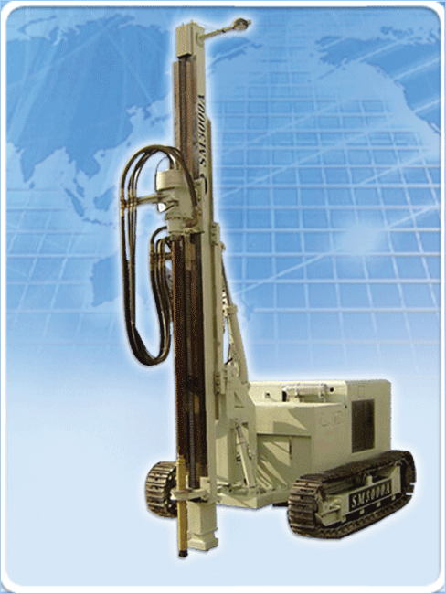 鉆機采用內燃機(或電動機)液壓油泵動力組供給鉆機行走、回轉、推進及提升、油缸擺角定位等,除潛孔沖擊器之外的所有動力;鉆機鉆孔作業時只有潛孔沖擊器消耗壓縮空氣。該鉆機采用潛孔沖擊對心擴孔或偏心擴孔外套管跟進護壁成孔工藝鉆鑿水電圍堰注漿孔、提壩防滲注漿也、基礎回固注漿孔及錨孔等;該鉆機也可用于水井、地溫空調鉆孔作業及各類石方工程爆破孔作業。